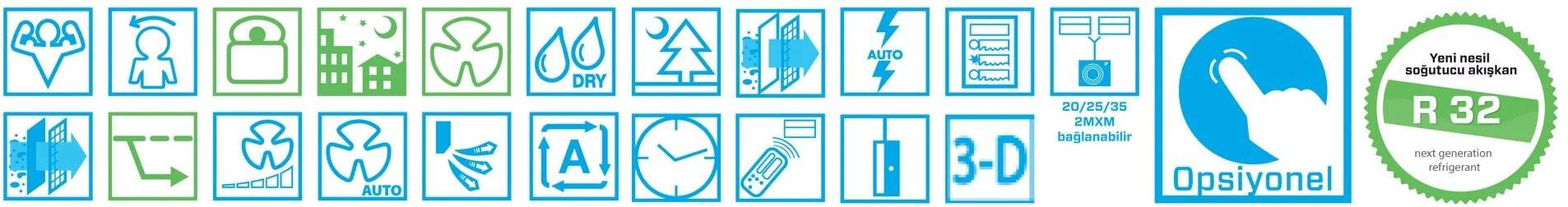 Farklı tiplerde iç üniteler bağlanabilir: ör. duvar tipi, tek yöne üflemeli kaset tipi, gizli tavan tipi vb.