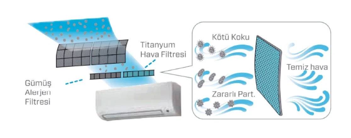 Gümüş Alerjen FiltreGümüş alerjen giderici ve hava temizleyici filtre polen ve toz akarı gibi alerjenleri yakalar; %99 ve daha fazlasını ortadan kaldırarak sürekli temiz hava sağlar.