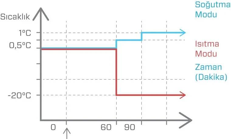 OFF tuşuna basıldığında uykudan evvel seçilen kapama tuşu ile gece ayar modu devreye alınır, böylece gece boyunca aşırı ısıtma ve soğutma önlenir.