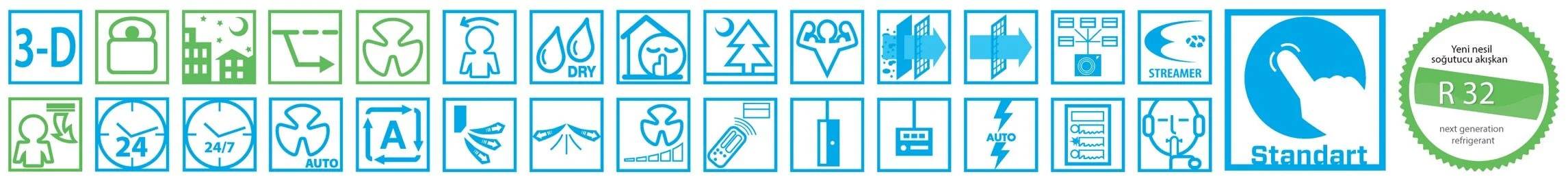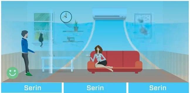 Yatay ve dikey kanatlar sırasıyla otomatik olarak hareket eder. 3 boyutlu hava üfleme sistemi odanın her yerine sıcaklığı eşit dağıtır.