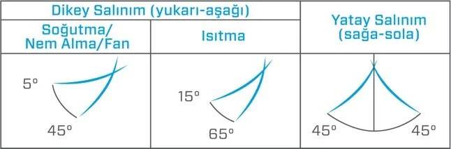 Yatayda 90°, dikeyde 50°’lik açıyla hareket eden kanatlar, daha geniş bir alana yayılan hava akışı sağlar.