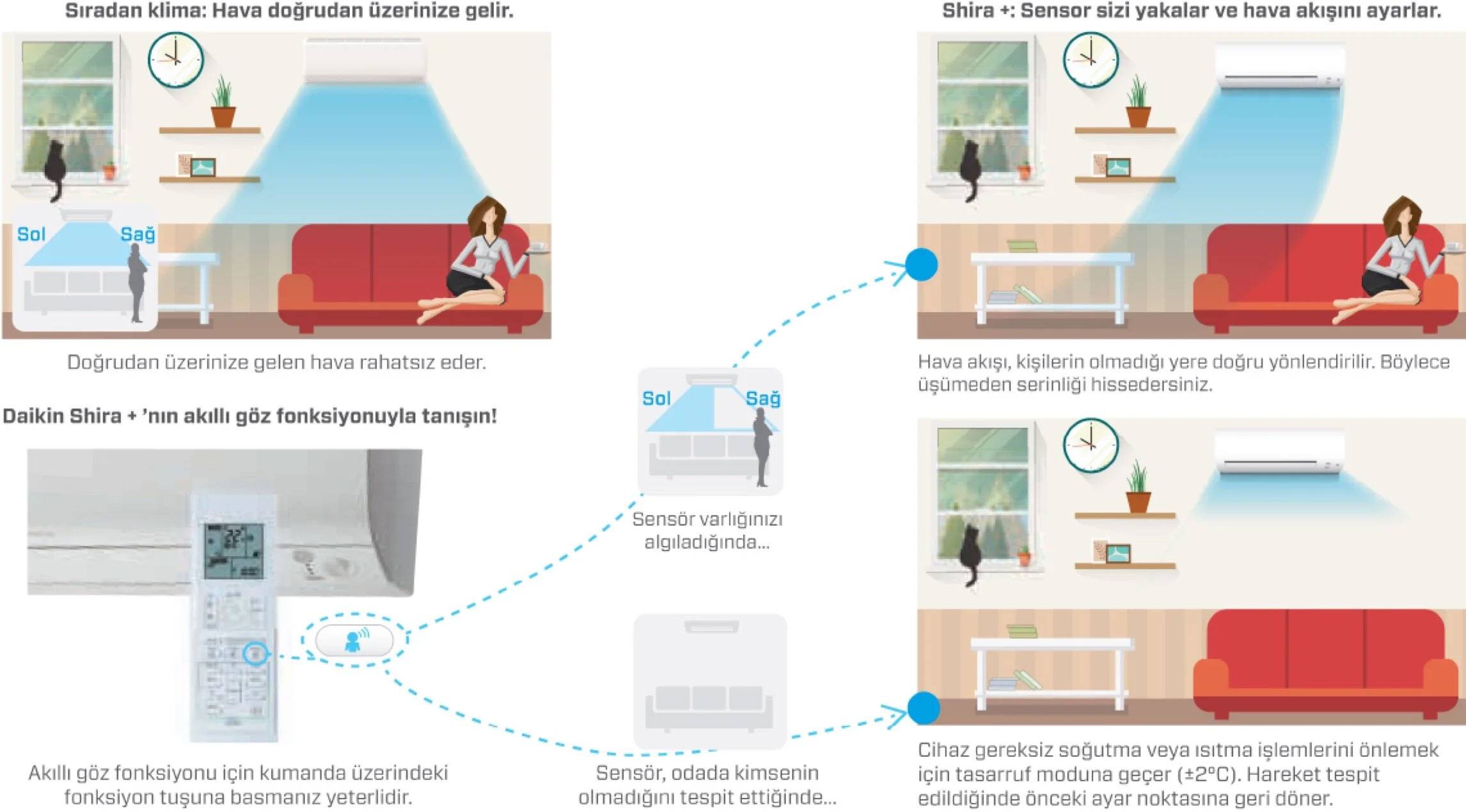 Shira+ akıllı gözü sayesinde tek bir dokunuşla her zaman rahat hissetmenizi sağlar.